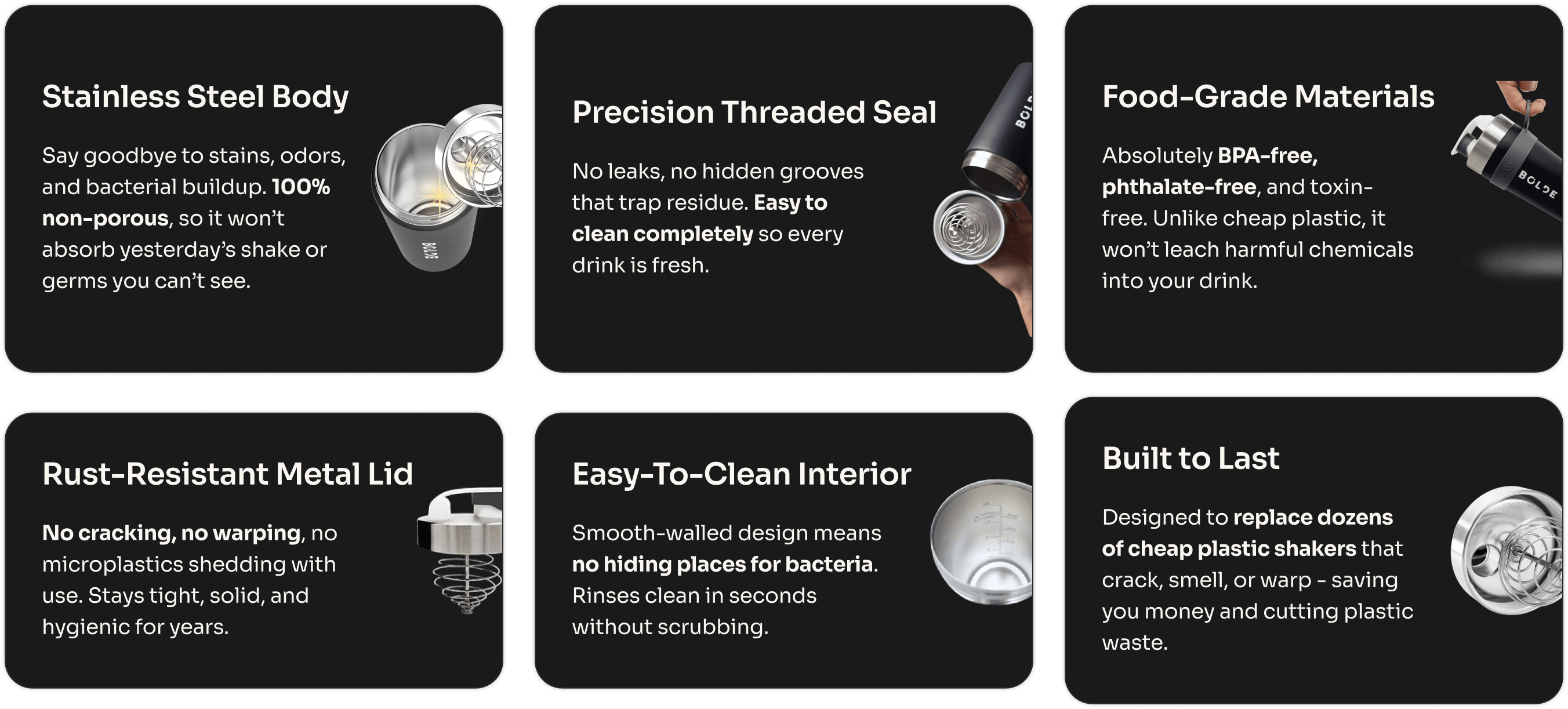 You get a shaker that’s actually clean, safe, and built to last - without waste or frustration.
